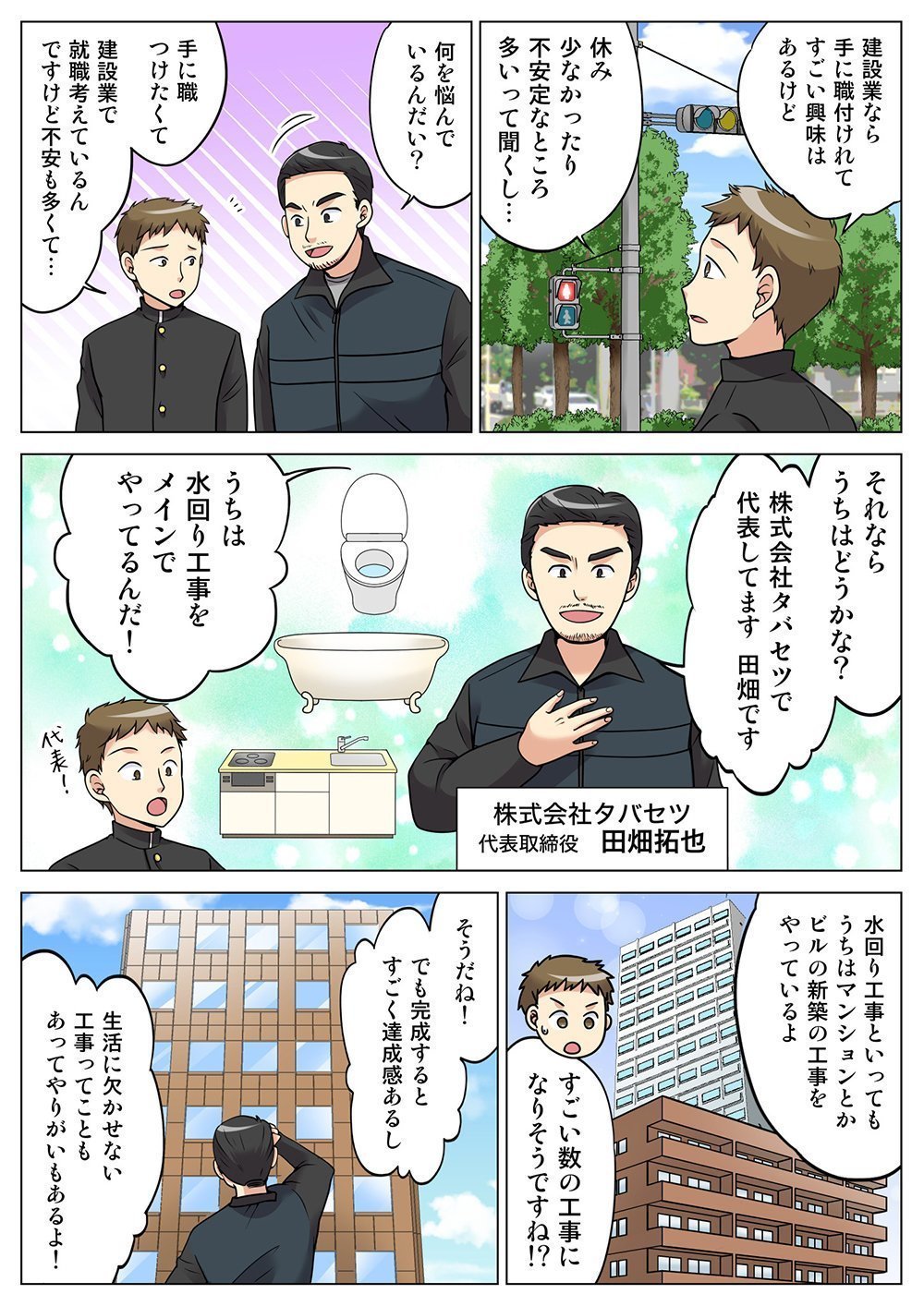 タバセツの仕事はカタチとして残るため完成時には達成感を得られるでしょう。生活に欠かせない水まわりの工事を通して暮らしを支えたい人は、ご応募ください。